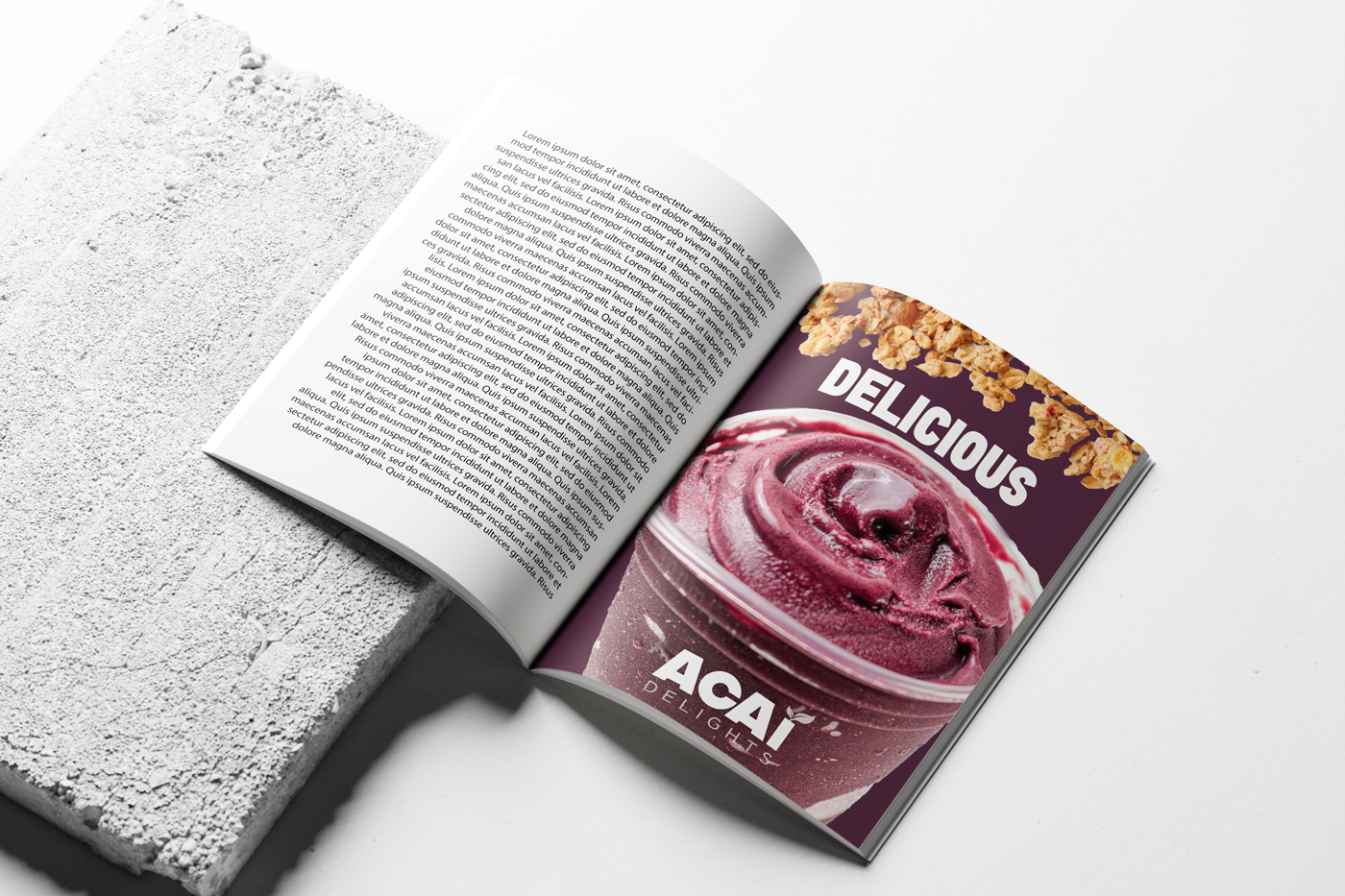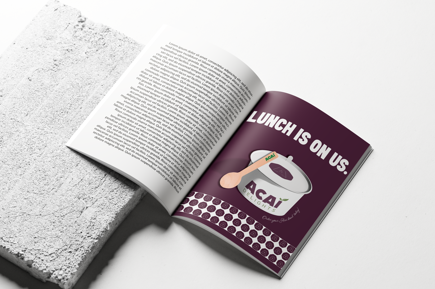 Acai Delights is a home-based business specializing in acai bowls and premium acai trays. we researched and brainstormed and developed their logo, branding elements, advertisements, and packaging materials.